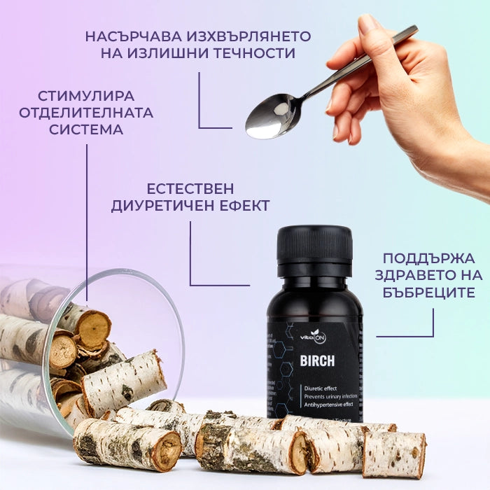 La teinture Bouleau est un extrait de haute qualité à base d’écorce de bouleau blanc (Betula pendula), spécialement conçu pour soutenir le système excréteur et les processus naturels de purification de l’organisme. L’écorce contient des composés bioactifs uniques, dont le plus important est le bétuline. C’est précisément cette synergie de substances naturelles qui est responsable des effets bénéfiques de la teinture sur la santé des reins, des voies urinaires et le maintien d’un équilibre hydrique‑salin sain.
