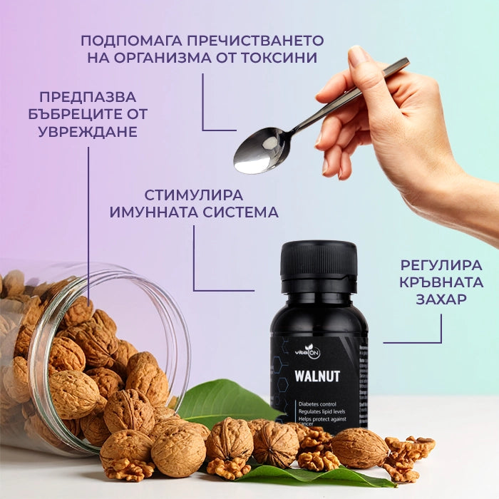 Une attention particulière est portée à la teinture de feuilles et de coquilles de noyer dans la lutte contre le diabète de type 2. De plus, c'est une bonne aide pour le bon travail du foie et des reins. Ses propriétés antioxydantes le rendent adapté pour stimuler et soutenir l’immunité.